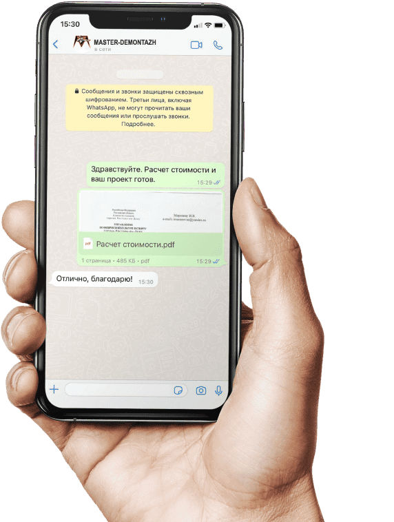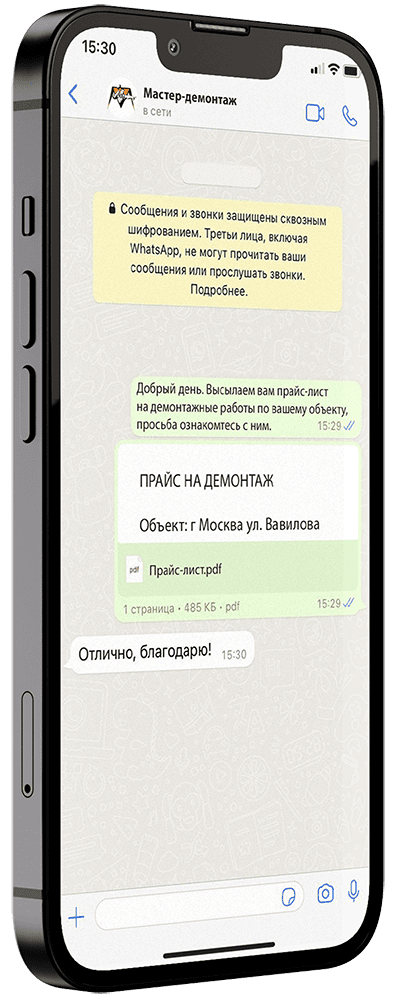 Работаем по этапам и соблюдаем сроки. Составляем план демонтажа, согласуем этапы и сдаём объект вовремя.