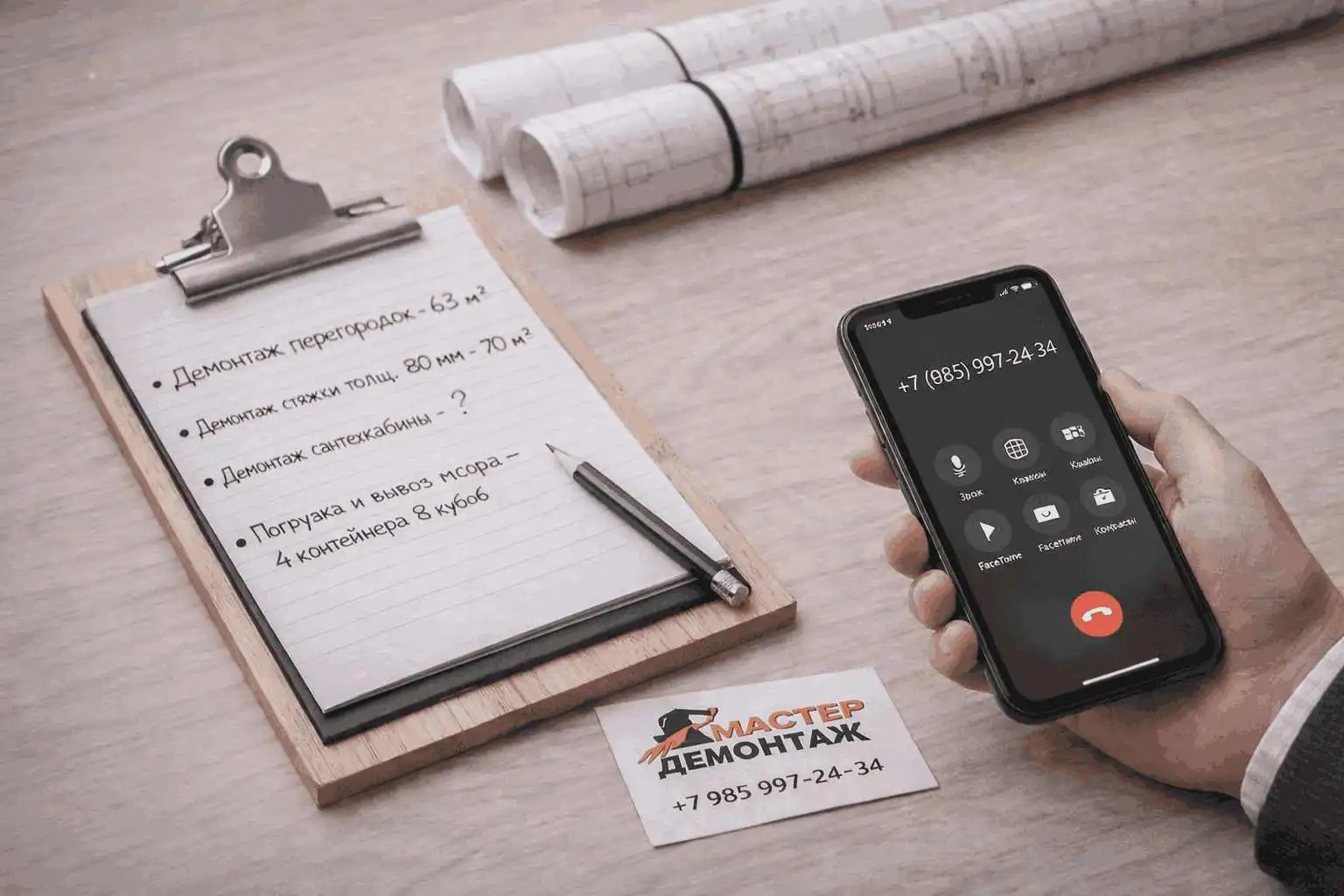 Если вам нужен демонтаж в Москве “без сюрпризов”, мы начинаем с оценки по фото/замерам и фиксируем объём работ до старта. Это удобно, когда требуется демонтаж под ключ: от подготовки помещения и защиты зон до разборки, упаковки и выноса. По срокам и порядку действий ориентируем заранее — чтобы вы могли планировать доставку материалов и выход следующих мастеров.