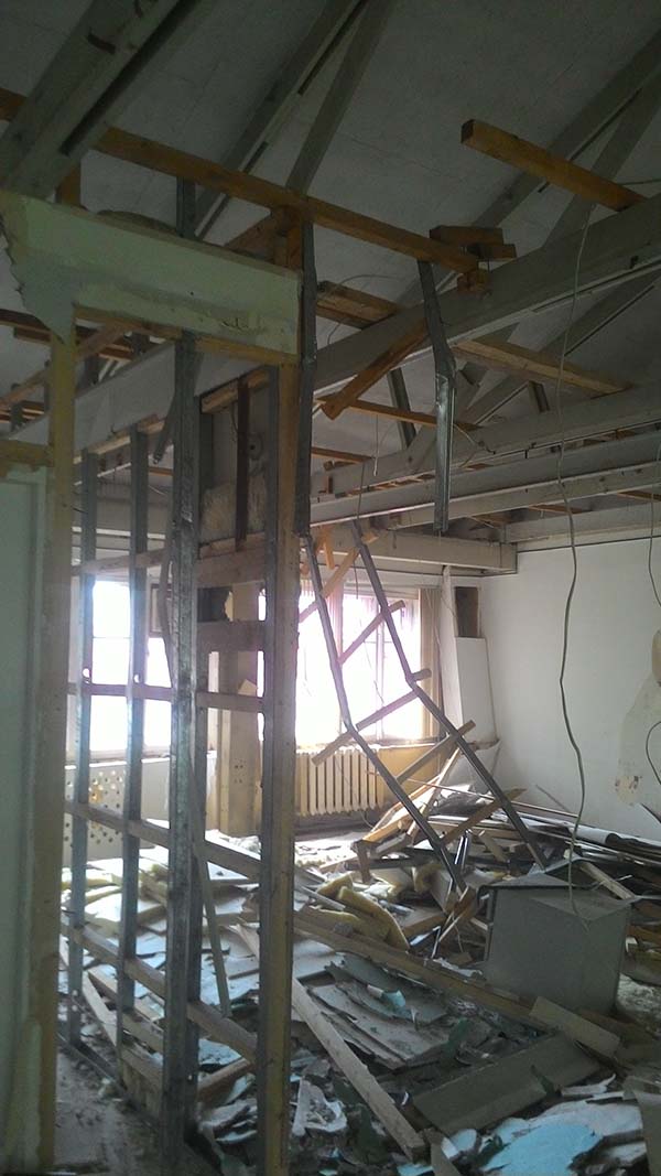 Резку выполняли с делением на подъёмные части — так проще контролировать вес каждого элемента и не перегружать помещение мусором. После формирования проёма смонтировали усиление швеллером: выставили металл по уровню, закрепили и проверили жёсткость узлов. Завершили объект уборкой и вывозом мусора — проём готов к установке дверного/перегородочного блока и дальнейшей отделке.