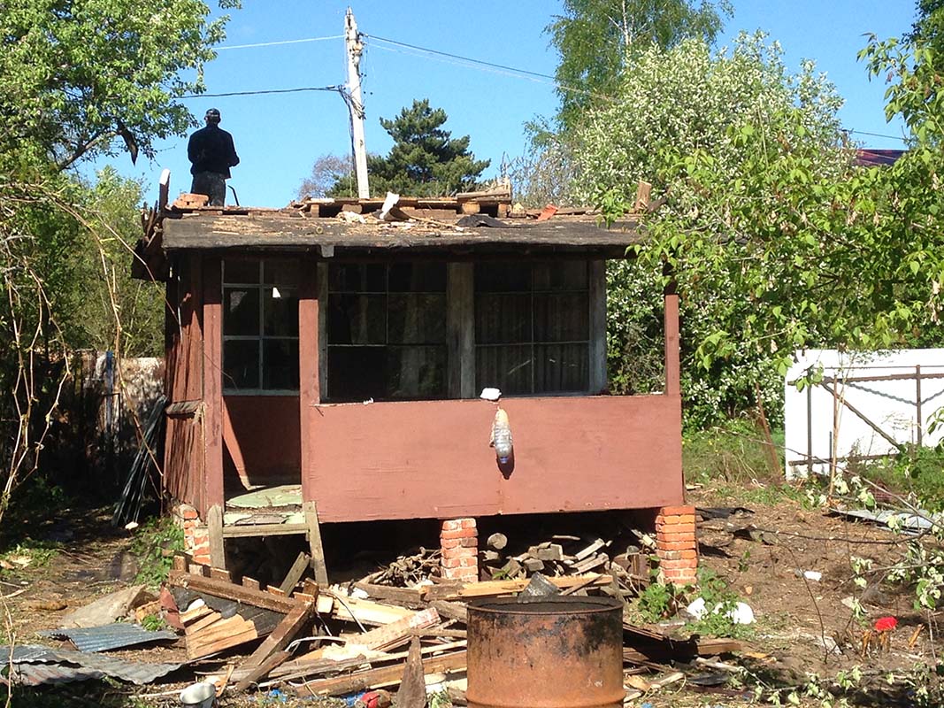 Берём разные задачи: отдельные строения, пристройки, хозблоки, гаражи, заборы и т.п. Например, если на участке нужно убрать ограждение перед заездом техники — можно совместить с работами по демонтажу заборов.